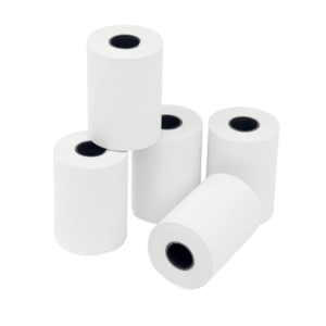 Paquete de 5 rollos de papel térmico blanco de alta calidad, diseñado especialmente para impresoras térmicas Bluetooth de 58 mm.